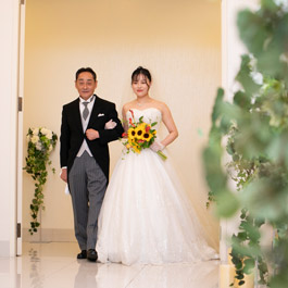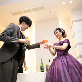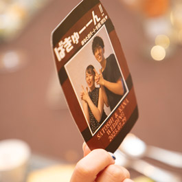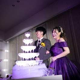 メインバックのアクアスクリーンも魅力的。 真っ白なキャンパスにお二人のカラーで、 オリジナルコーディネートをお楽しみ頂けます。